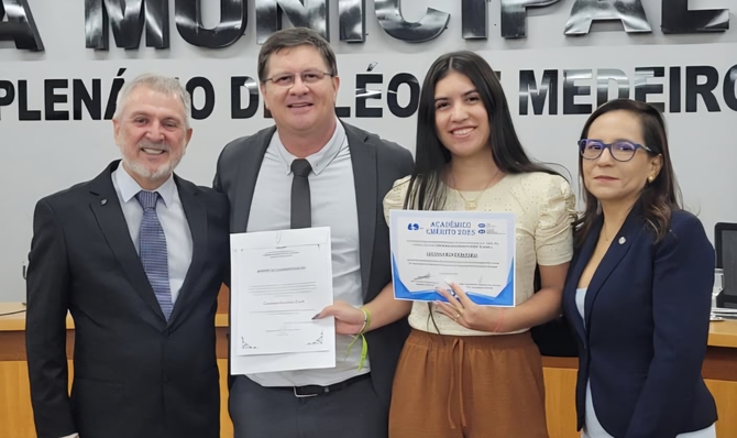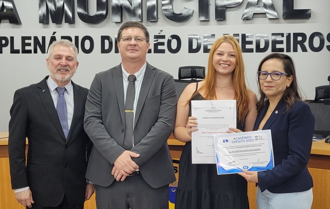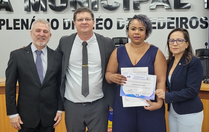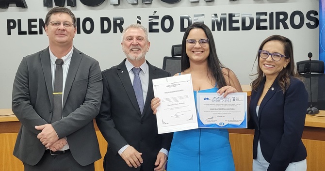 Ainda como parte dessa parceria, a Mesa Diretora prestou homenagens às acadêmicas Marcielly Marta Monteiro; Ellen Cristina Silva de Almeida; Luany Beatriz Castello da Costa; Luciana Rondon Faria; Kamila Mendes Franco; ao acadêmico Thiago Camilo de Arruda Rodrigues.